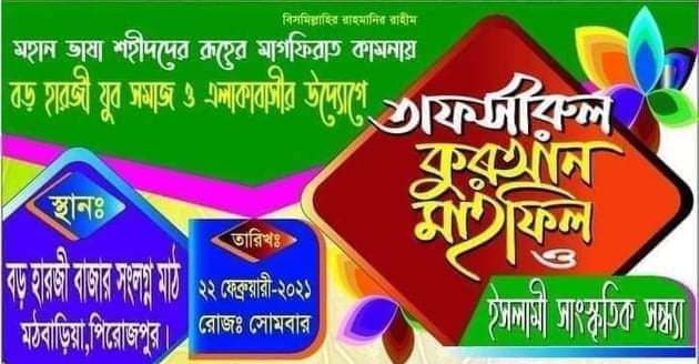 বান্ধবপাড়া প্রতিনিধি: যথাযোগ্য মর্যাদায় মহান শহীদ ও আন্তর্জাতিক মাতৃভাষা দিবস পালিত হয়েছে মঠবাড়িয়ার বান্ধবপাড়া ছালেহিয়া… Read More
