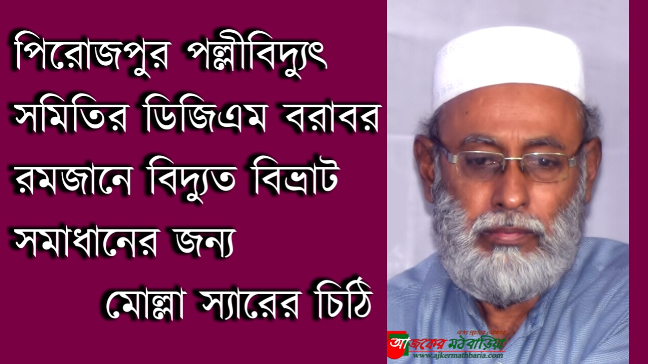 বরাবর ডি জি এম পিরোজপুর পল্লী বিদ্যুৎ সমিতি মঠবাড়িয়া অঞ্চল। বিষয়ঃনামাজ,ইফতার ও সেহরির সময়ে লোডশেডিং… Read More