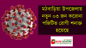 অনলাইন ডেস্কঃ পিরোজপুরের মঠবাড়িয়ায় বর্তমানে ৩জন করোনা পজিটিভ রোগী সনাক্ত হয়েছে। ১জনের রিপোর্ট ঢাকা থেকে এসেছে,বাকি ২জনের স্যাম্পল মঠবাড়িয়া থেকে পাঠানো। ৩জনই সম্প্রতি ঢাকা ফেরত।২জন হাসপাতালে আইসোলেশনে আছেন। ১জন বাসায় আইসোলেশনে থেকে চিকিৎসা নিচ্ছেন। আজকের মঠবাড়িয়াকে এই তথ্য নিশ্চিত করেছেন মঠবাড়িয়া উপজেলা স্বাস্থ্য কমপ্লেক্সের কর্মরত ডাঃ ফেরদৌস প্রিন্স।