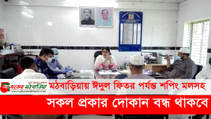 এ সভায় মঠবাড়িয়ায় ঈদুল ফিতর পর্যন্ত শপিং মলসহ সকল প্রকার দোকান বন্ধ থাকবে। শুধু মাত্র মুদি,কাঁচা বাজার ও কৃষি পন্য সকাল ৮টা থেকে ১২পর্যন্ত খোলা থাকবে। পৌর শহরের মাছের বাজার কে এম লতীফের মাঠে স্থানান্তর করার সিদ্ধান্ত গৃহীত হয়।